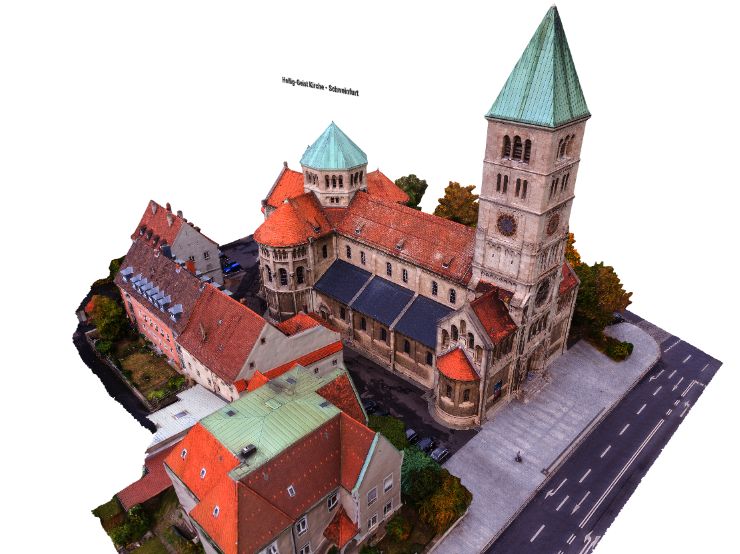 Von drei Kirchen in Schweinfurt sollte jeweils ein virtuelles 3D-Modell samt Textur erzeugt und dargestellt werden.