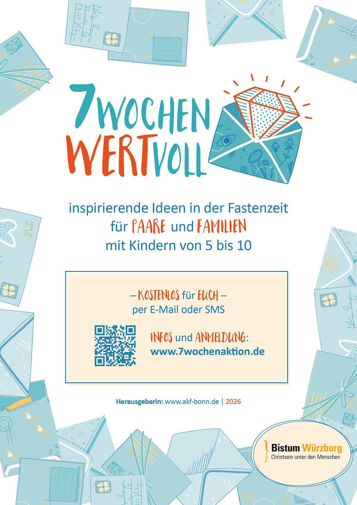 Jede angemeldete Familie beziehungsweise jedes angemeldete Paar erhält für jede Woche der Fastenzeit kostenfrei einen digitalen Brief mit Ideen und spirituellen Impulsen für das Miteinander. „Nicht das Verzichten steht im Fokus, sondern das MEHR an gemeinsamer Zeit für Partnerschaft und Familienleben. Sieben Briefe geben vielfältige Anregungen für das Zusammenleben, bieten Anlässe für Gespräche, vermitteln Ideen zum gemeinsamen Ausprobieren und spirituelle Impulse“, heißt es in der Einladung. Dabei geht es um „Werte-Fragen“ wie: Wann erlebe ich Zeit als wertvoll? Welche Werte sind uns heilig? Wie zeigen wir Wertschätzung? Anmeldung für Paare jeden Alters im Internet unter www.7wochenaktion.de, für Familien mit Kindern im Alter von fünf bis zehn Jahren im Internet unter www.elternbriefe.de/7Wochen.