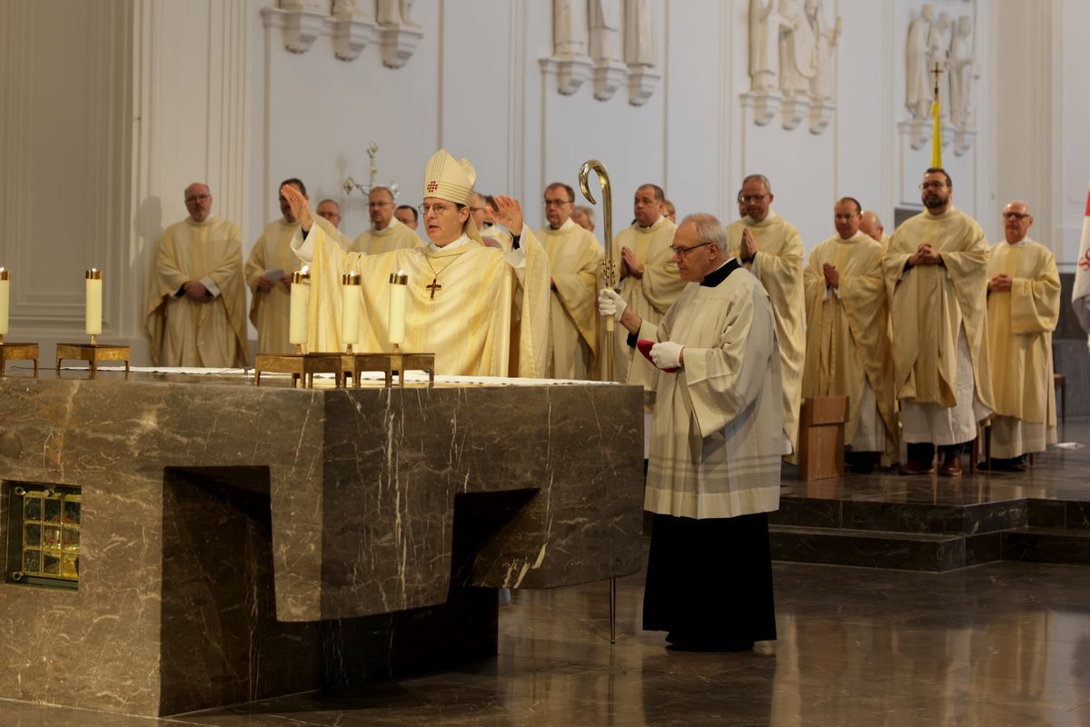 Würzburg (POW) Mit rund 350 Soldatinnen und Soldaten, deren Angehörigen sowie Zivilbeschäftigten der Bundeswehr hat Weihbischof Dompropst Paul Reder anlässlich des Weltfriedenstags am Donnerstag, 29. Januar, einen Gottesdienst im Würzburger Kiliansdom gefeiert. Sie kamen aus den Standorten Altheim, Hammelburg, Hardheim, Lauda, Neckarzimmern, Niederstetten, Veitshöchheim, Volkach, Walldürn und Wildflecken. Die Feier stand unter dem Motto „Der Friede sei mit euch allen: Hin zu einem unbewaffneten und entwaffnenden Frieden“. „Wir feiern Weltfriedenstag in einer Zeit, in der Unfrieden herrscht auf der Erde. Aber gerade weil das so ist, suchen wir nicht nur die Verbindung untereinander, mit allen Menschen guten Willens, sondern wir suchen vor allem die Verbindung mit Jesus Christus. Er ist unser Friede“, sagte der Weihbischof in seiner Begrüßung.