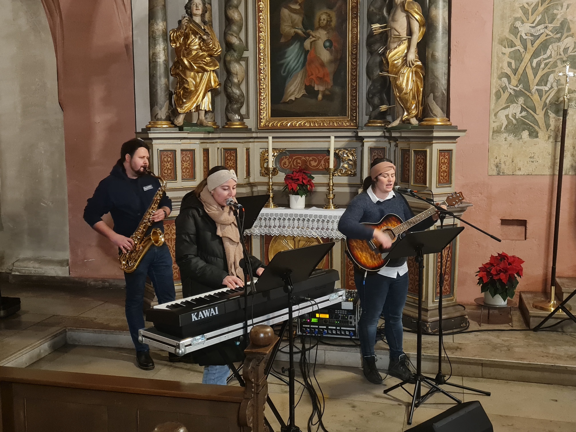 Bemerkenswert sei auch die Orgel. „Ich darf Ihnen den einzigartigen Organisten Elias Mack vorstellen“ – mit diesen charmanten Worten übernahm Nora Steinmüller die Moderation auf der Empore und übergab das Wort an den Organisten. Nach einigen Erklärungen über die Orgel und ihre Besonderheiten griff Elias Mack in die Tasten und es erklang das „Jingle Bells“ von Lefébure-Wély.