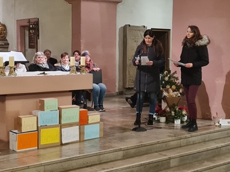 Die Sprecherin des Gemeindeteams Stefanie Steinmüller, die zusammen mit ihrer Tochter durch das Programm führte, begrüßte die Gäste. Wenn man „bemerkenswert“ im Duden nachschlage, so stoße man auf die Worte beachtlich, bedeutend und ziemlich groß. Ziemlich groß sei wohl die Kirche St. Kilian, beachtlich die Zahl der Kapellen – Annakapelle, Kreuzkapelle, Sebastianuskapelle und Großenbergkapelle. Und bedeutend für Mellrichstadt sei die hier geborene Ordensgründerin Franziska Streitel, so Stefanie Steinmüller. Aber zum Glück gebe es auch im Hier und Jetzt einiges Bemerkenswertes.