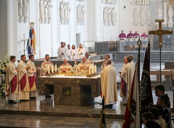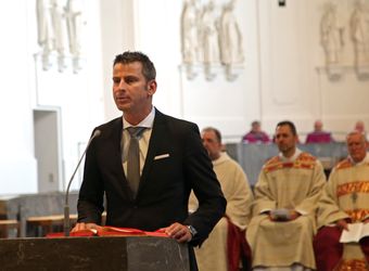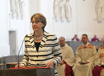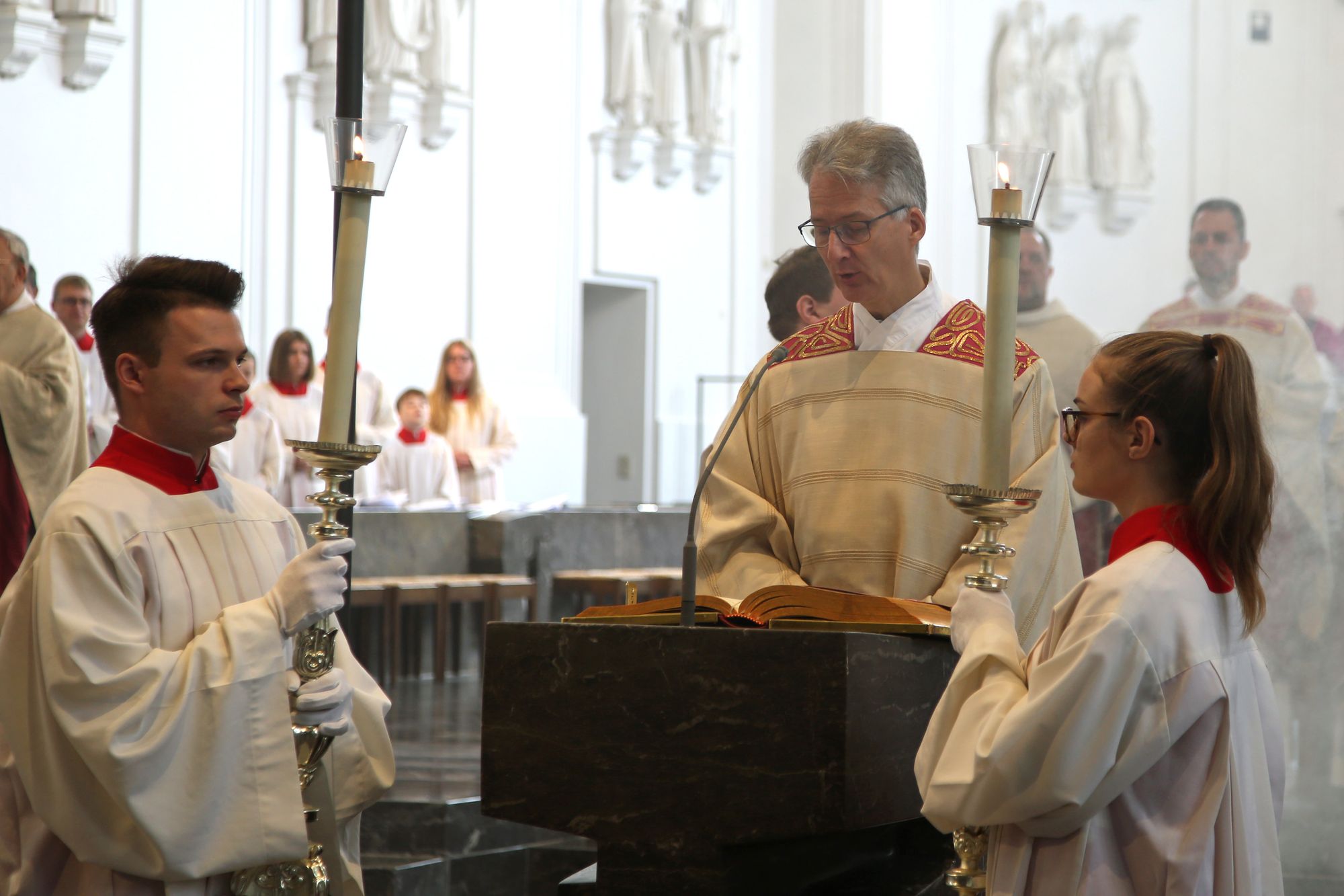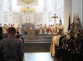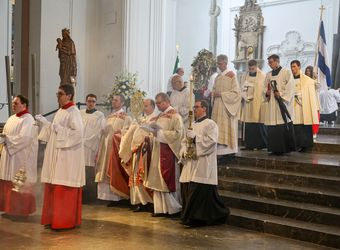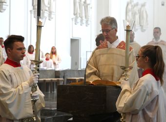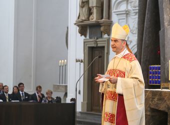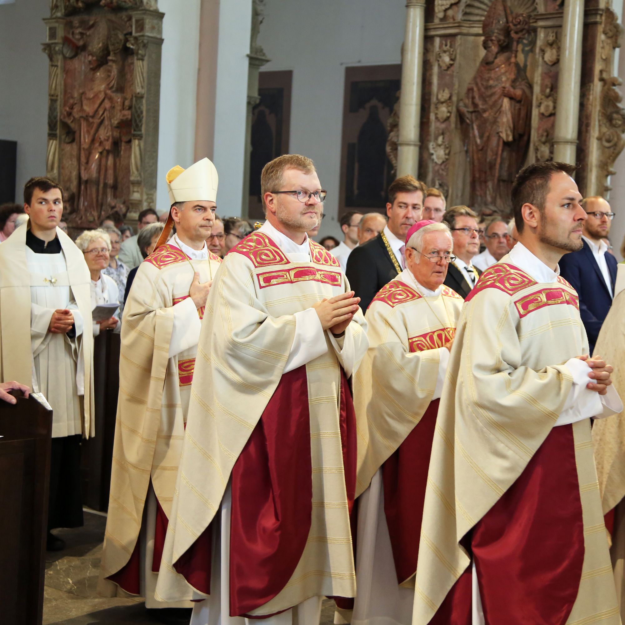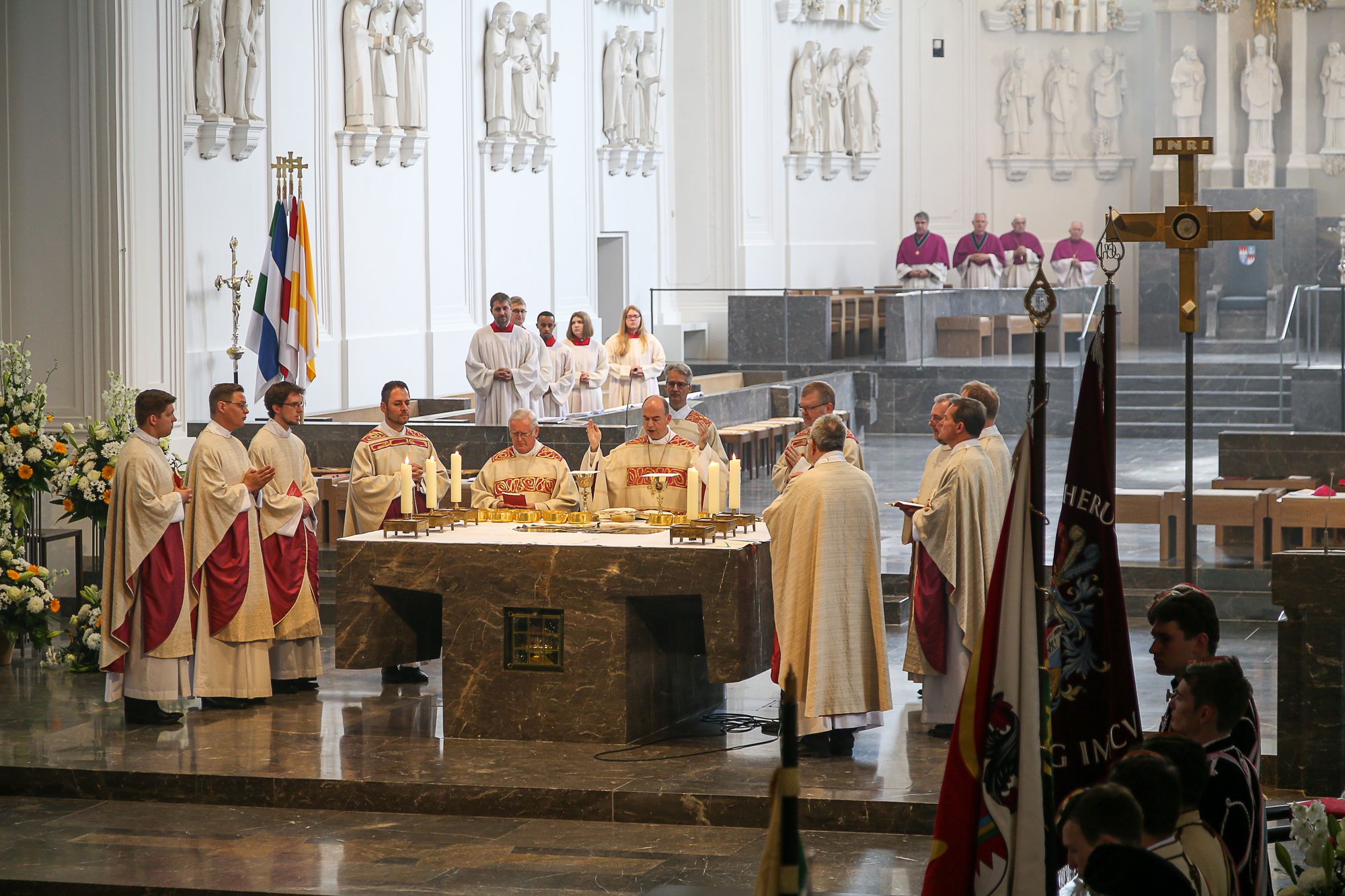 Der Segen, den Melchisedek dem Abraham spende, schwebe auch über dem heutigen Tag, betonte Bischof Jung. „Zweimal werden wir heute den Segen spenden, um uns daran zu erinnern, dass wir berufen sind, Segen zu sein für die Menschen. Es ist uns aufgetragen, den Menschen Anteil zu geben an der großen Liebe Gottes.“ Der Zehnte, den Abraham sodann übergebe, sei weit mehr als nur eine Abgabe, erklärte der Bischof. „Es ist der Dank, den wir Gott schulden für das, was er uns schenkt. Wie kann ich dem Herrn all das danken, was er mir Gutes getan hat?“ Voll Dankbarkeit werde heute das Opfer Jesu Christi gefeiert, „das uns treibt, diese Freude zu den Menschen hinauszutragen“.