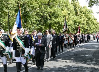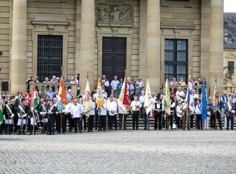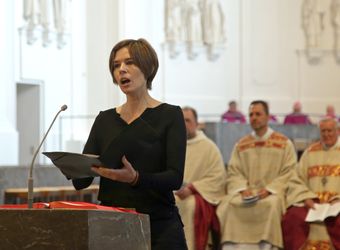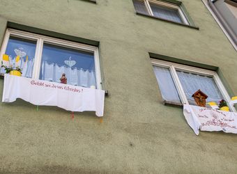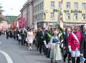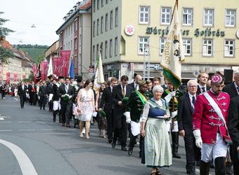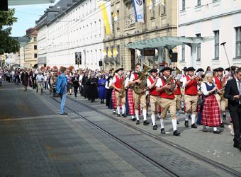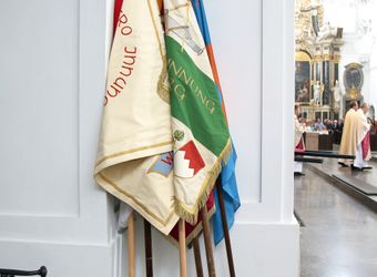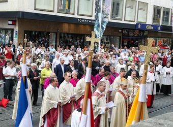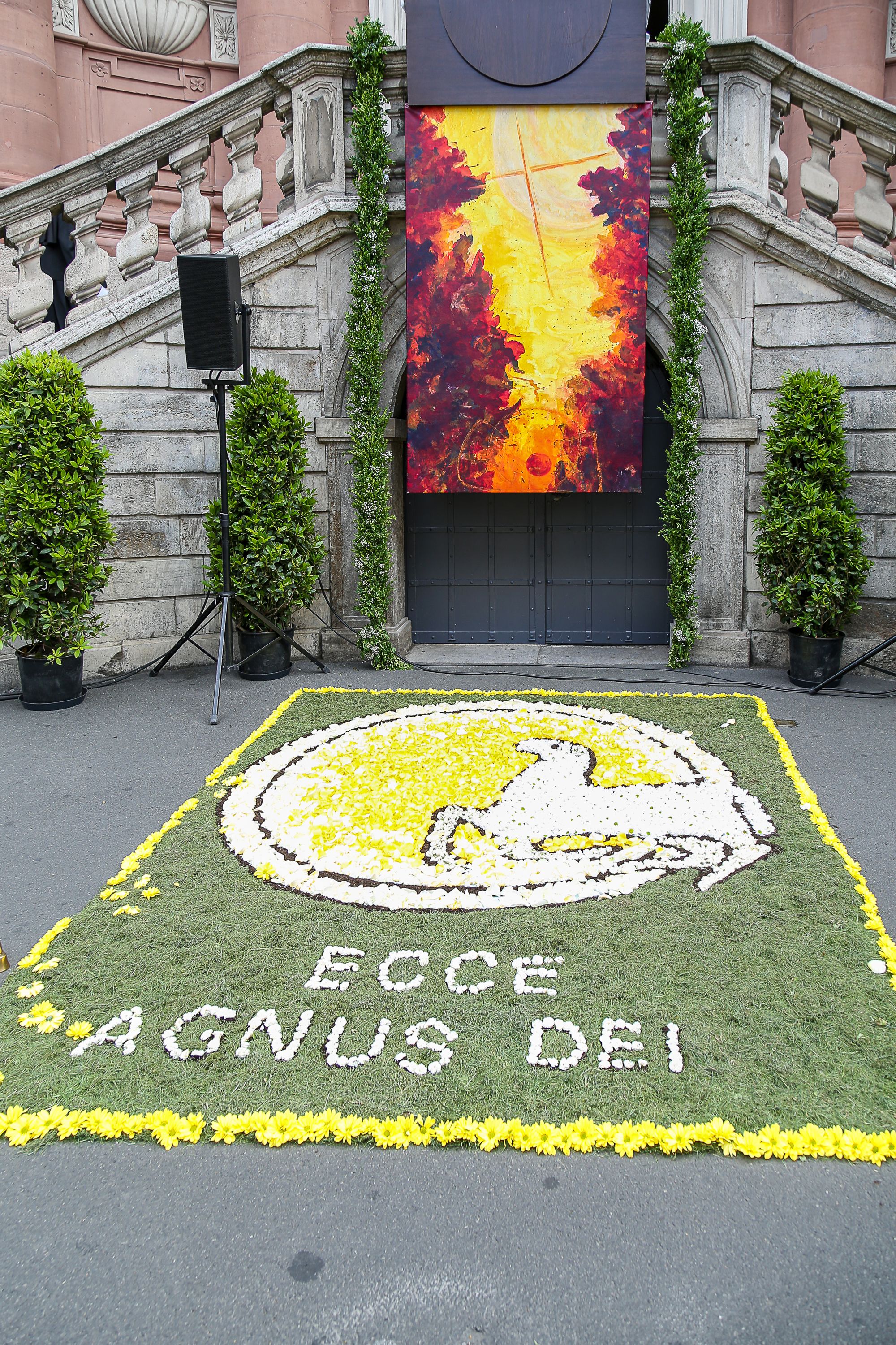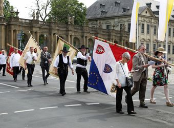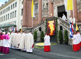 Fronleichnamsprozession in Aschaffenburg betrachtet „Europa und seine Patrone“