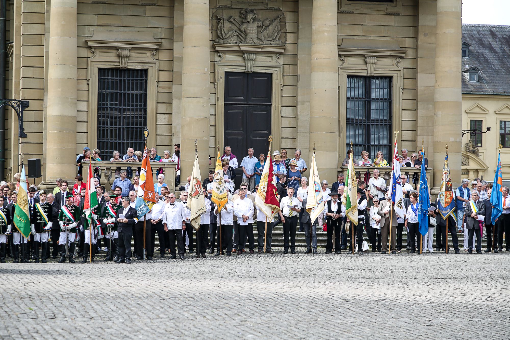 Würzburg/Aschaffenburg/Schweinfurt (POW) Bei strahlendem Sonnenschein und sommerlichen Temperaturen haben viele Tausend Katholiken in den Pfarreiengemeinschaften des Bistums Würzburg an Fronleichnam, 20. Juni, das eucharistische Brot durch die Straßen der Städte und Dörfer Unterfrankens begleitet. In den Städten Würzburg, Aschaffenburg und Schweinfurt fanden zentrale Feiern statt. Bischof Dr. Franz Jung bezeichnete Fronleichnam als „ein freudiges Fest der Besinnung auf die Mitte der Kirche“. Es sei schön, dass die Vielfalt, welche die Kirche auszeichne, am heutigen Tag sichtbar werde. Die Prozession durch die Würzburger Innenstadt stand unter dem Leitwort „Denn Gott hat uns nicht einen Geist der Verzagtheit gegeben, sondern den Geist der Kraft, der Liebe und Besonnenheit“.