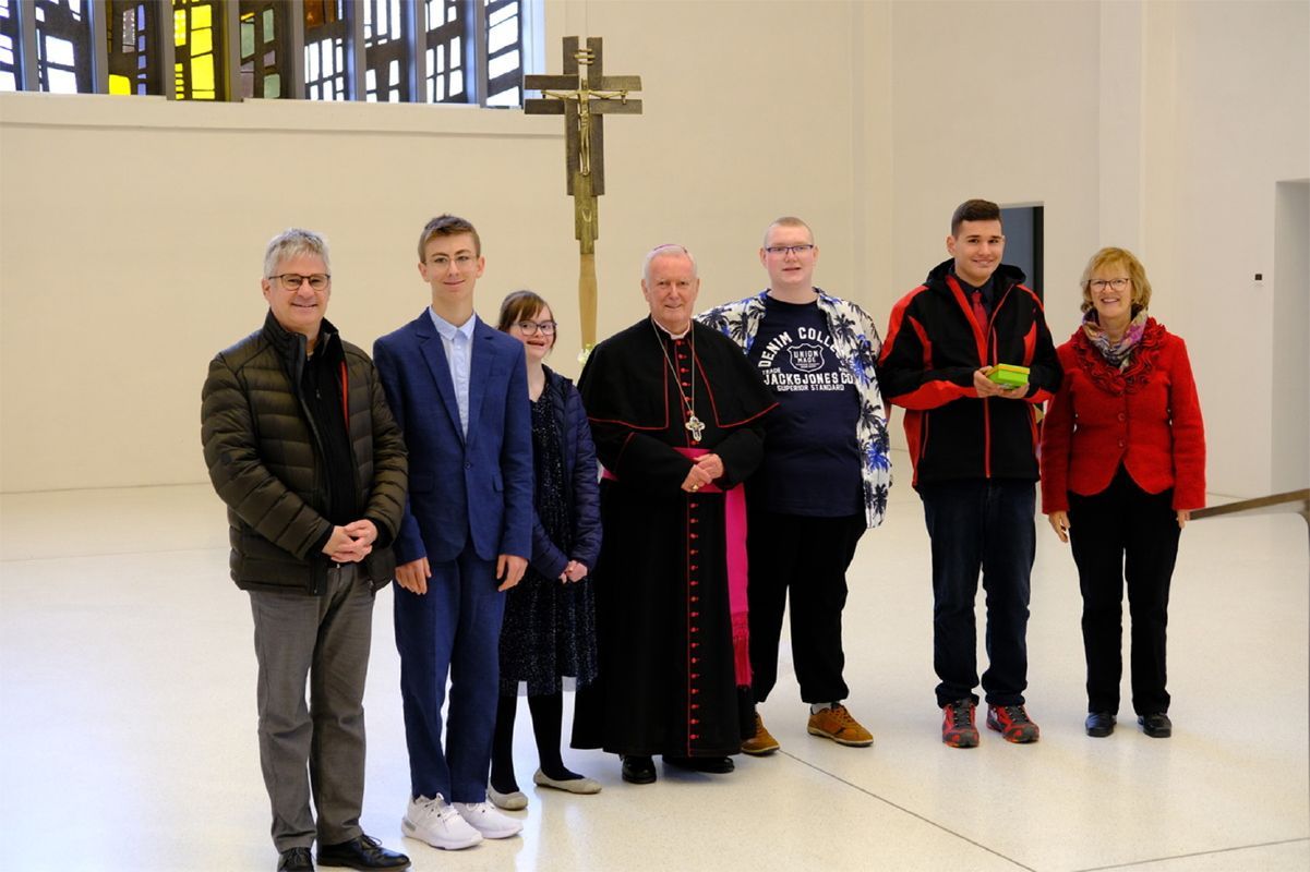Das Motto der Feier lautete „Feuer und Flamme“, schreibt die Schule in einer Pressemitteilung. Bischof Hofmann zelebrierte den Gottesdienst zusammen mit Teampfarrer Stefan Eschenbacher. Im Lesungstext ging es um das Pfingstereignis, bei dem Gottes Geist mit Feuerflammen verglichen wird. Alle erhielten einen Streifen Krepppapier in den Feuerfarben und schwenkten sie zu den rockigen Klängen von „Fire“. Organist Gerhard Vonend spielte auf dem Flügel zudem „Light my fire“, und ein Schüler der Franziskus-Schule spielte ein Stück auf der Veeh-Harfe. Zur Erinnerung gab es für die Firmlinge je eine glitzernde rote Glaskugel mit dem Firmdatum. Die Jugendlichen hatten sich seit Februar wöchentlich mit ihrer Religionslehrerin Stefanie Just zur Vorbereitung getroffen. Dazu gehörten Rollenspiele, Besuche in der Kirche und in der Bahnhofsmission. Außerdem gestalteten sie jeweils eine Schatzkiste, in der verschiedene Erinnerungsstücke gesammelt wurden.