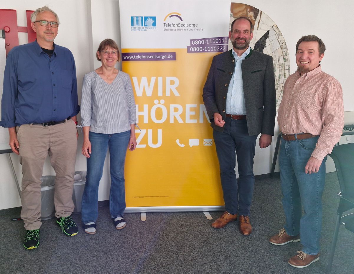 München/Würzburg (POW) Über die Arbeit und die Herausforderungen der Telefonseelsorge in Bayern haben sich Vertreter der Telefonseelsorge in Bayern mit Dr. Matthias Belafi, Leiter des Katholischen Büros, in München ausgetauscht. Ulrike Dahme, stellvertretende Stellenleiterin der Katholischen Telefonseelsorge München, und Joachim Schroeter, stellvertretender Leiter der Telefonseelsorge Würzburg, schilderten die Arbeit der 17 Dienststellen in Bayern. Dort sind rund 1200 vorwiegend ehrenamtlich Mitarbeitende rund um die Uhr und an 365 Tagen im Jahr für Menschen in Not da. Die Beratung erfolgt telefonisch, per Chat und Mail. „40 Prozent der Gespräche bei der Telefonseelsorge finden abends oder nachts statt, wenn andere Anlaufstellen oder Facheinrichtungen geschlossen haben“, betonte Schroeter laut einer Pressemitteilung.