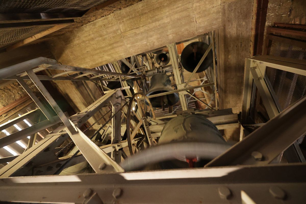 In jedem der beiden Domtürme hängen jeweils zehn Glocken: im Südwestturm die Salvator-Glocke, darüber die acht Zimbelglocken und ganz oben die Lobdeburg-Glocke, im Nordwestturm die übrigen zehn Glocken aus dem Jahr 1966. Gesteuert werden sie per Computer aus der Domsakristei. Dabei werde die exakte Zeit berücksichtigt, die der Glockenmotor brauche, um die Glocke so weit in Bewegung zu bringen, bis der Klöppel zum ersten Mal anschlägt und den ersten Ton erzeugt. Dommesner Thomas Schumann versieht seinen Dienst seit mittlerweile 30 Jahren. Er demonstrierte den Journalistinnen und Journalisten zum Abschluss des Pressegesprächs den Klang der einzelnen Glocken – auf Höhe der Glockenstube, mit Ausblick auf die Dächer Würzburgs.