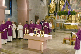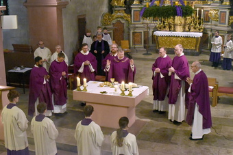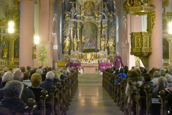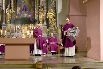 Es muss ein besonderer Anlass sein, wenn 30 Ministrantinnen und Ministranten, das gesamte Pastoralteam zusammen mit dem evangelischen Pfarrer Andreas Werner, Dekan Dr. Andreas Krefft und Generalvikar Dr. Jürgen Vorndran bei dicken Weihrauchschwaden und mächtiger Orgelmusik in die voll besetzte Kirche einzieht.