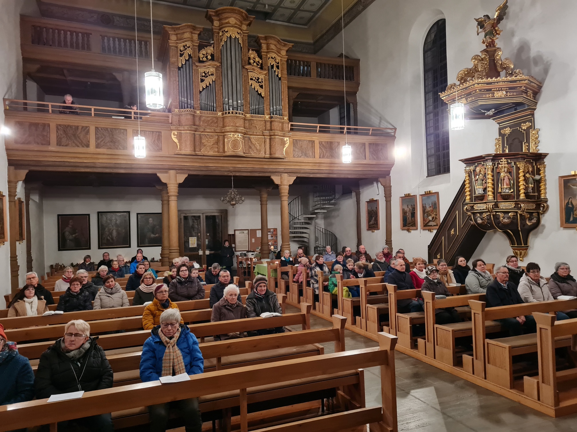 Zwischendurch erklang auch die Orgel. Das Instrument wurde 1795 von Orgelbauer Johann Brehler aus dem Fuldischen erbaut und die meisten Register der Orgel sind bis heute erhalten. Daher bietet die Orgel auch einen ganz charakteristischen Klang, den die Organistin Andrea Werner eindrucksvoll zu Gehör brachte.