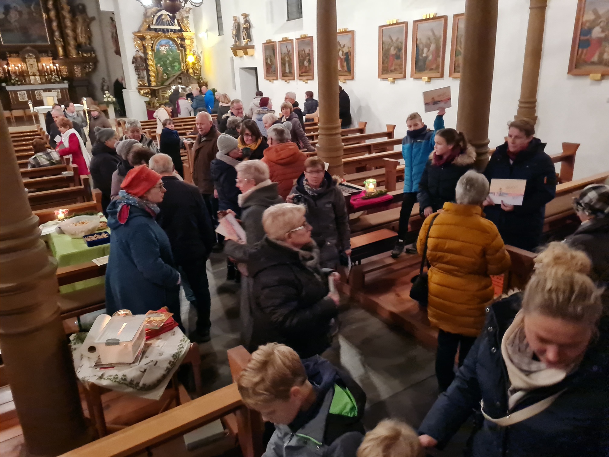 Spätestens dann zeigte sich Kirche mal anders: Begegnung und reger Austausch im Kirchenraum. Kinderpunsch, Glühwein und andere Köstlichkeiten versüßten die Gespräche und Rundgänge. Das Gemeindeteam in Nordheim hat sich wahrlich ins Zeug gelegt. „Kirche ist nicht statisch, Kirche das sind wir“ , das Begrüßungswort von Egon Bauß, wurde hier auf bemerkenswerte Weise mit Leben erfüllt. Mit Freude und Begeisterung wurden auch die „bemerkenswert-Pässe“ entgegengenommen. In Nordheim gab es dafür den ersten Stempel, eine Friedenstaube. Am 17. Dezember in Frickenhausen gibt es den nächsten Stempel. Sind Sie neugierig? Dann sind Sie herzlich eingeladen, sich bei den kommenden Veranstaltungen überraschen zu lassen.