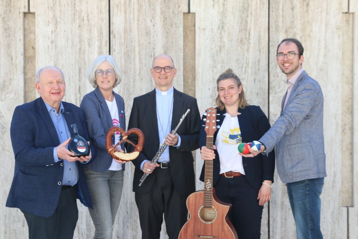 Das Kulturprogramm der unterfränkischen Künstlerinnen und Künstler wird sehr abwechslungsreich sein. „Da ist sicher für alle Interessen etwas Ansprechendes dabei“, sagt Schulz. Beispielsweise ist der integrative Circus Blamage vertreten. Es musizieren unter anderem Alphornbläser aus dem Dekanat Bad Kissingen, Bigband und Chor des Schweinfurter Celtis-Gymnasiums, die Blaskapelle Oberschwappach, und die Turedancer aus Zellingen zeigen ihre preisgekrönten Choreografien. Was Essen und Trinken angeht, ist die Vielfalt ähnlich: „Es gibt beispielsweise fränkische Bratwurst, Ochsenkeule mit Soße im Weckla und Kartäuserklöße sowie eine breite Palette vom Frankenwein über Kreuzbergbier bis hin zu einer Vielfalt an alkoholfreien Getränken. Da findet sicher jeder etwas“, erklärt Schulz. Die Planungen rechnen mit jeweils 1000 Gästen pro Platz.