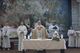 Sömmersdorf (POW) „Habe ich den Mut und gibt mir Gott die Gnade, im entscheidenden Moment das Richtige zu tun? In der Familie, im Beruf, hier in Sömmersdorf?“ Das sei die grundlegende Frage hinter dem Passionsspiel, die jeden, der das Geschehen auf sich wirken lasse, betreffe. Das hat Bischof Dr. Franz Jung beim Pontifikalgottesdienst zum Auftakt der Sömmersdorfer Passionsspiele am Sonntagvormittag, 23. Juni, betont. Markus Grzibek, Pfarrer der Pfarreiengemeinschaft „Sankt Martin im Oberen Werntal, Geldersheim“, erklärte zu Beginn der Feier, es sei gute Tradition, dass der Bischof die Reihe der insgesamt 18 Aufführungen mit einem Gottesdienst eröffne. Zu diesem Zeitpunkt war die kurze Schrecksekunde wenige Augenblicke vor dem Gottesdienst bereits vergessen: Die Brandmeldeanlage hatte auf den Weihrauch reagiert und lautstark Alarm ausgelöst.