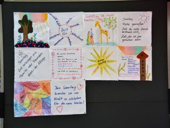 Am bundesweiten Aktionstag entstanden in Schweinfurt, in Würzburg und in vielen anderen Städten individuell gestaltete Patchworkteile. Diese zeigen auf kreative Weise warum der Sonntag als arbeitsfreier Tag schützenswert ist und was Menschen fehlen würde, wenn es den freien Sonntag nicht gäbe. Alle Patchworkteile werden im Sommer von der KAB Deutschlands zusammen geschneidert. Nach der Bundestagswahl soll diese (vielleicht) größte Picknickdecke der Welt in der Bundeshautstadt Berlin den Bundestagsabgeordneten vorgestellt werden um damit der Forderung zum Erhalt des arbeitsfreien Sonntag Ausdruck zu verleihen.