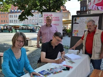 KAB Mitglied Ulrike Pfrang setzt sich seit vielen Jahren für den Sonntagsschutz ein. „Wir brauchen diesen staatlich verordneten Ruhetag und zwar genau so, wie er ursprünglich gedacht war. Es wird nur in den gesellschaftlich unbedingt notwendigen Bereichen wie Gesundheit und Sicherheit und Allgemeinwohl (z. B. Kultur) gearbeitet. Das sollte noch besser gewürdigt werden. Außerdem ist der Sonntag der Tag für soziale Kontakte in Familie und Gesellschaft. “ erklärte Ulrike Pfrang am Aktionsstand.