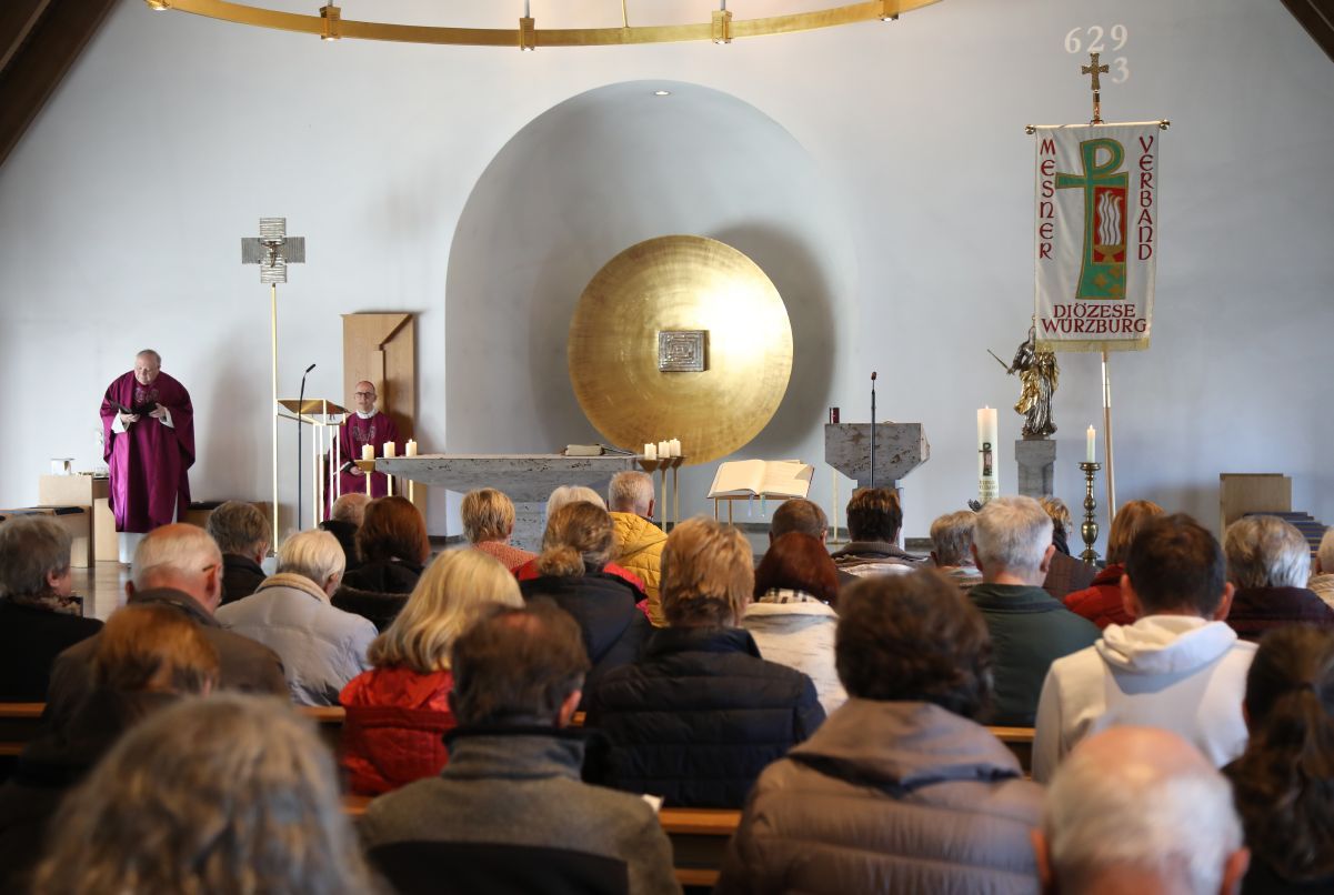 Würzburg (POW) Mit rund 130 Mesnerinnen und Mesnern aus dem ganzen Bistum hat Bischof Dr. Franz Jung am Samstag, 8. März, einen Besinnungstag im Exerzitienhaus Himmelspforten in Würzburg gefeiert. „Es ist mir eine große Freude, dass wir gemeinsam diesen Tag feiern. Die Vorbereitung des Gottesdienstes ist Ihnen ein Herzensanliegen, und dafür danke ich Ihnen sehr herzlich“, begrüßte er die Männer und Frauen in der Hauskapelle. Im Anschluss an den Gottesdienst tauschte sich der Bischof mit den Männern und Frauen über ihren Beruf aus und gab Anregungen, wie man die Feiertage der Heiligen Woche für das eigene Glaubensleben nutzen kann.