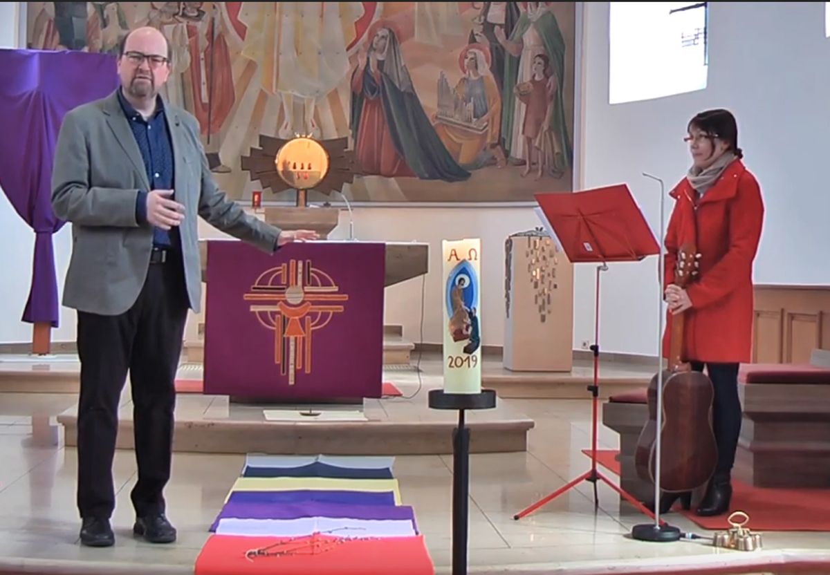 Wie kann man Kindern die Karwoche erklären? Pfarrer Sven Johannsen, Leiter der Pfarreiengemeinschaft „12 Apostel am Tor zum Spessart, Lohr am Main“, und Sandra Sauer, Rektorin der Grundschule Sackenbach, haben sich vor die Kamera gestellt und feiern eine Osterandacht. „In diesem Jahr ist eben alles ganz anders“, erklärt Johannsen den Kindern im Video. Auf der Homepage der Pfarrei schreibt er dazu: „Nicht nur der Ostersonntag, sondern jeder Tag, vor allem aber Palmsonntag, Gründonnerstag, Karfreitag und Karsamstag, sind für uns Tage, die wir besonders feiern. Frau Sauer und ich haben für Euch ein Video gedreht, das Euch helfen soll, mit uns durch die kommende Woche und die einzelnen Tage zu gehen und besser zu verstehen, an was wir dann denken.“