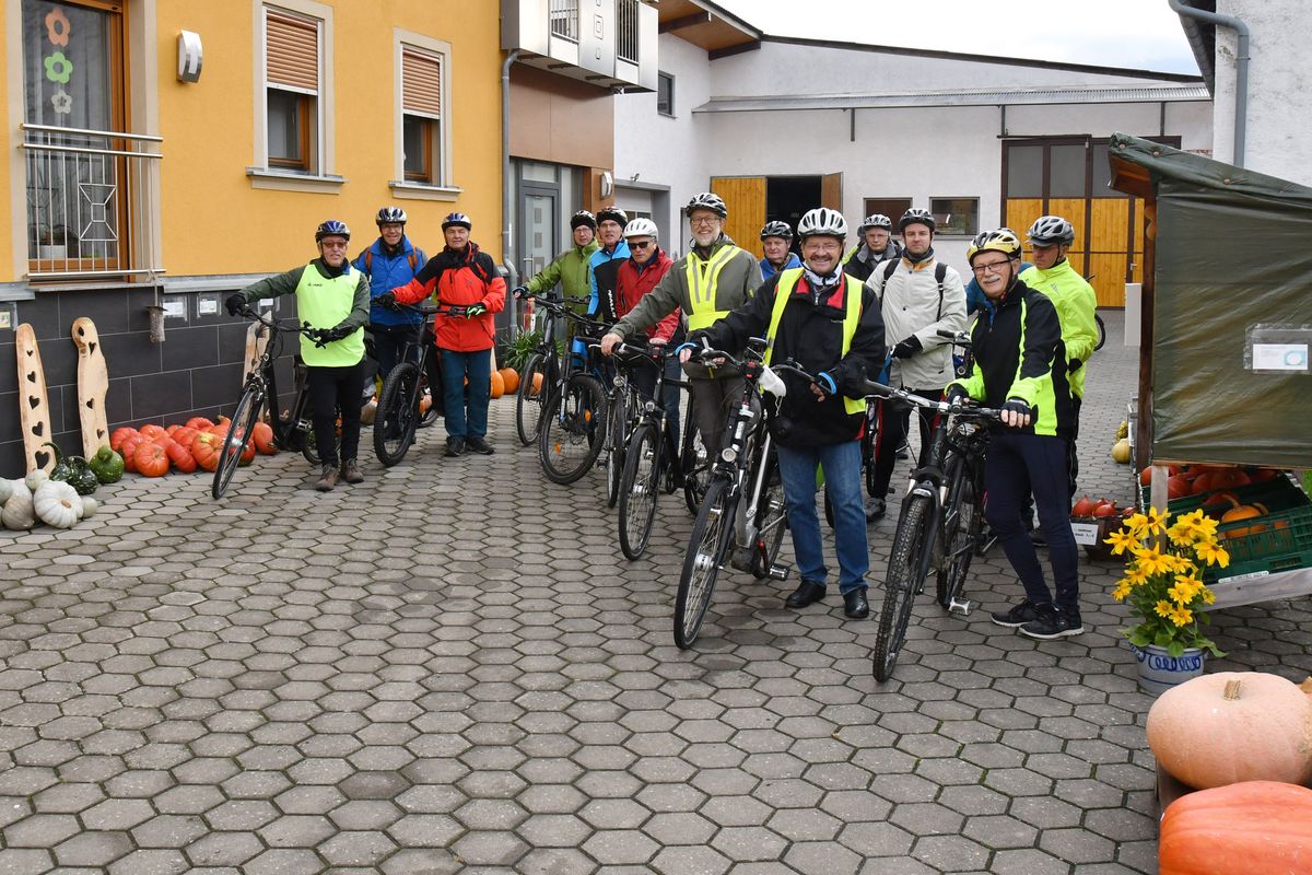 Die Tour startete mit einem Kürbis-Secco. Diese Spezialität gab es auf dem Hof von Herbert und Edith Keller, die dort 40 verschiedene Kürbissorten anbauen. Zudem präsentierte Herbert Keller, der gemeinsam mit Bernhard Weisenberger die Fahrradtour leitete, sein zweites Hobby: großformatige Holzsägearbeiten.