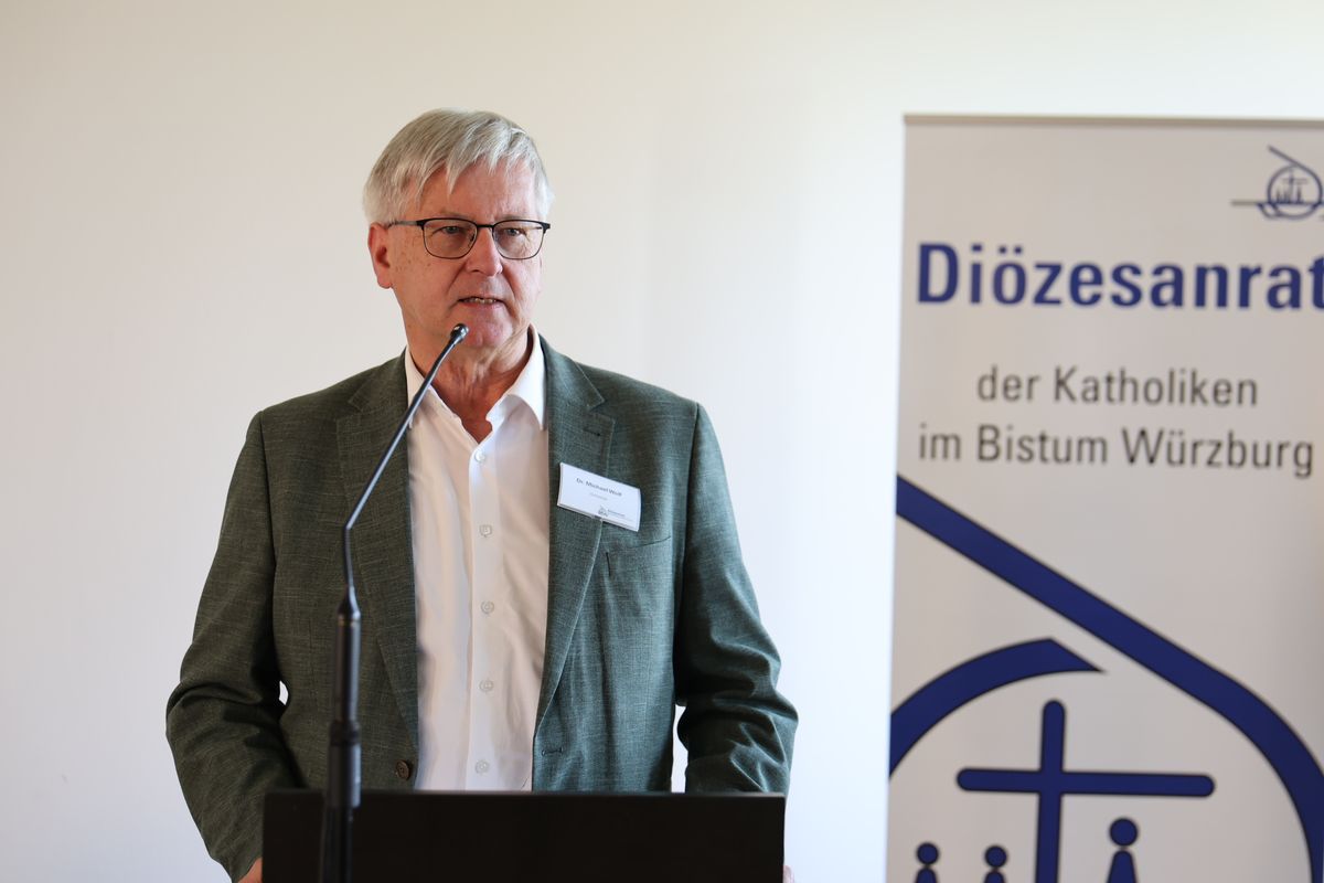 Würzburg (POW) Zu weltpolitischen Krisen, deutschen Streitfragen und innerkirchlichen Herausforderungen hat bei der Frühjahrsvollversammlung des Diözesanrats der Katholiken im Bistum Würzburg der Vorsitzende Dr. Michael Wolf in seinem „Bericht zur Lage“ am Samstag, 7. März, Stellung genommen. Er dankte vorweg den Kandidatinnen und Kandidaten der jüngsten Wahlen zu Gemeindeteams und Pfarrgemeinderäten und betonte die Bedeutung eines funktionierenden, demokratisch legitimierten Rätesystems in der Kirche.