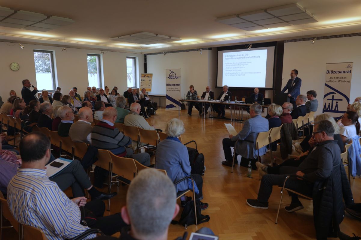 Nähere Details zum 104. Deutschen Katholikentag vom 13. bis zum 17. Mai 2026 in Würzburg hatte Domkapitular Albin Krämer, Bischofsvikar für den Katholikentag, für den Diözesanrat im Gepäck. So seien aktuell rund 700 Veranstaltungen an etwa 50 verschiedenen Orten quer über die Stadt verteilt geplant. Bei rund 40 Podien gehe es um ein Spektrum an kirchlichen und gesellschaftlichen Themen, unter den dort vertretenen Referenten seien hochrangige Politikerinnen und Politiker sowie Personen des öffentlichen Lebens. Auf der Kirchenmeile an der Leonhard-Frank-Promenade zwischen Alter Mainbrücke und Friedensbrücke warteten mehr als 300 kirchliche Organisationen und Institutionen aus ganz Deutschland auf Besucher. „Beim Abend der Begegnung am 13. Mai sind die Regionen des Bistums unter der Überschrift ,Kultur und Kulinarik' vertreten“, warb Krämer. Dieser Programmpunkt in der Innenstadt sei wie die zahlreichen Konzerte am Unteren Markt und dem Residenzplatz sowie die zentralen Gottesdienste auf dem Residenzplatz ohne Ticket zugänglich.