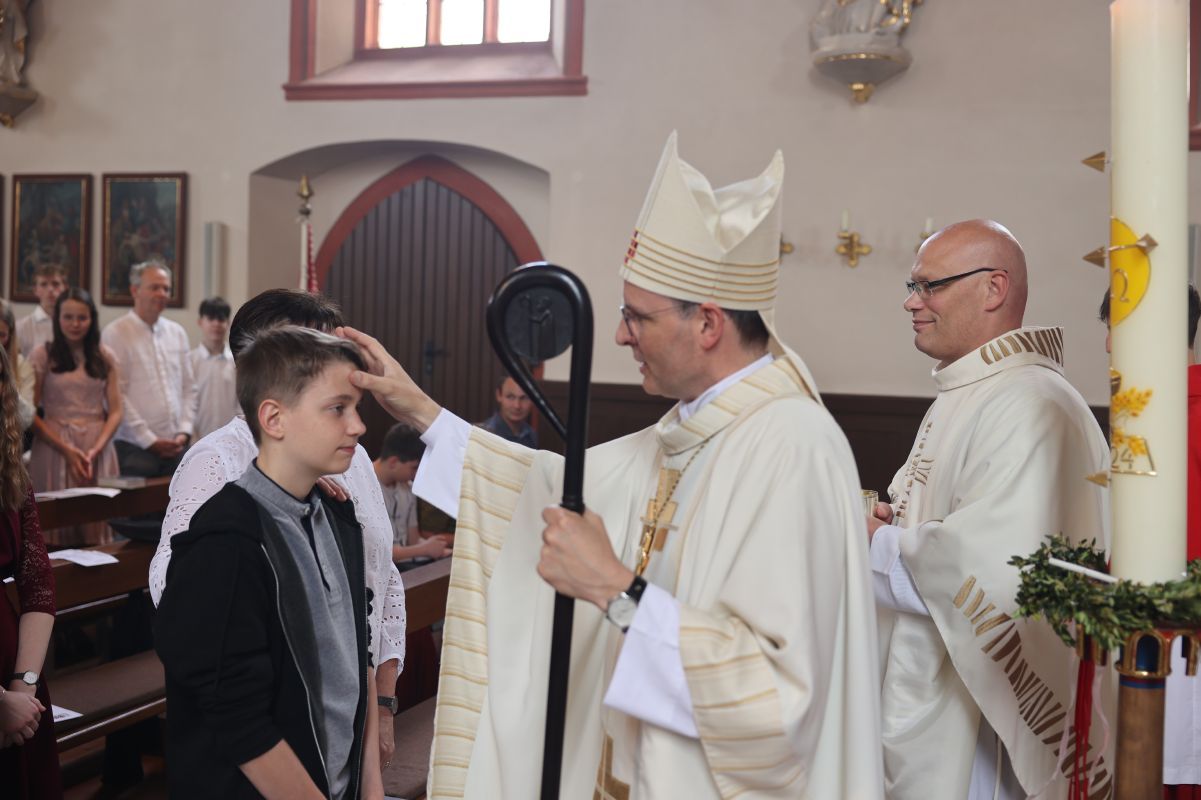 „Ich bin mir sicher, dass Du mit Gottes Geist Deinen guten Weg finden wirst. Nicht etwas, was andere Dir vorleben, nicht etwas, was Dich zu einer Kopie von anderen macht. Sei Du selbst!“, ruft der Weihbischof den jungen Leuten zu. Gott habe jeden Menschen in bewusst diese Welt gestellt. „Er hat Dich ins Leben gerufen mit einer ganzen Einmaligkeit, die nur Du in die Welt bringen kannst.“ Die Firmung sei das Siegel der Echt- und Wahrhaftigkeit, mit dem Gott seinen guten Plan besiegele, den er für jeden Menschen habe.