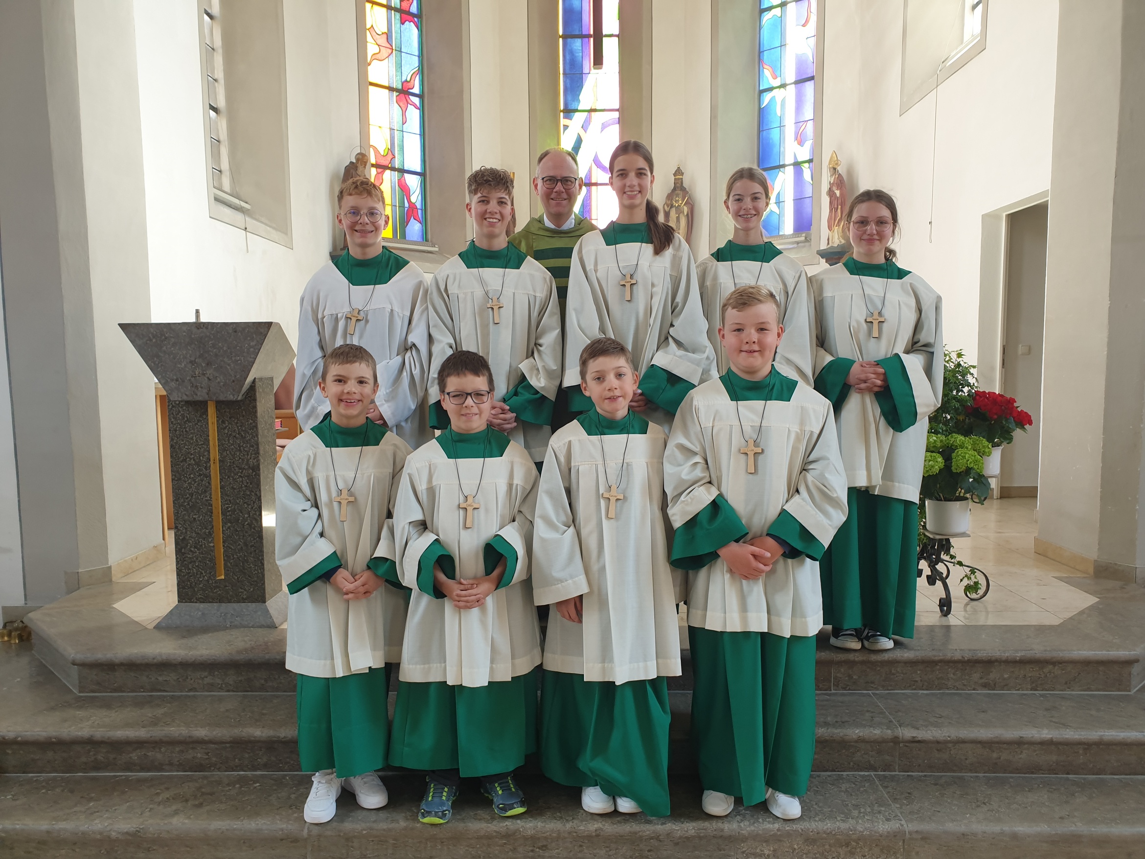 Im Rahmen des Sonntagsgottesdienstes wurden jüngst vier neue Ministranten aus Bastheim, Geckenau und Wechterswinkel offiziell aufgenommen. Pfarrer Steffen Behr ermunterte die neuen Ministranten Elias Landgraf, Jonas Prax, Luis Krämer und Xaver Enders in ihrem Dienst und dankte ihnen für die Bereitschaft. Die gesamte Pfarrgemeinde wünscht den Kindern viel Freude und ganz besonders den Segen Gottes bei ihrem wichtigen und ehrenvollen Dienst in der Kirche und am Altar. Ein besonderer Dank mit Applaus galt auch den Kindern und Jugendlichen, die schon seit einigen Jahren immer fleißig zum Ministrieren kommen.